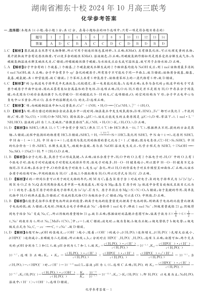 湖南省湘东十校2025届高三10月联考化学答案
