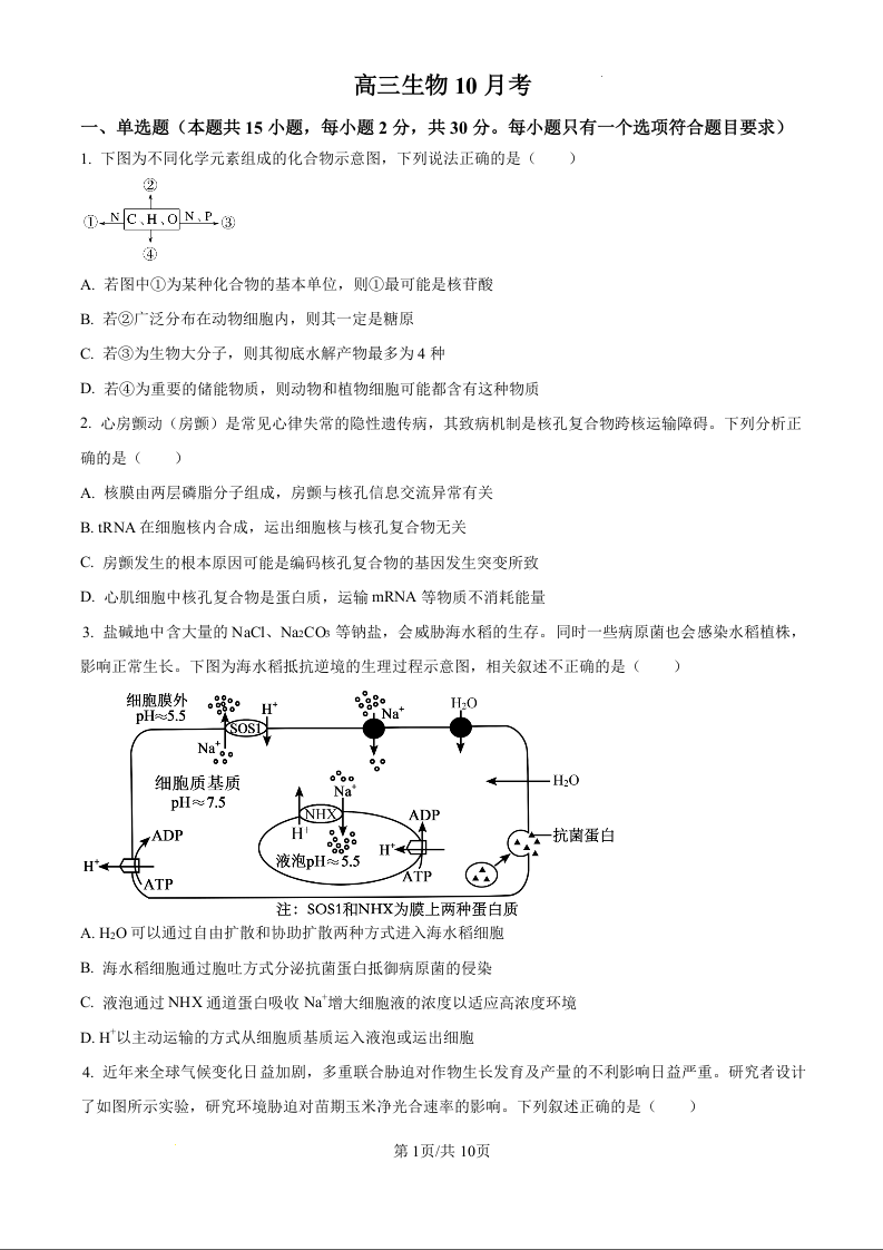 吉林省通化市梅河口市梅河口市第五中学2024-2025学年高三上学期10月月考生物试题(原卷版)