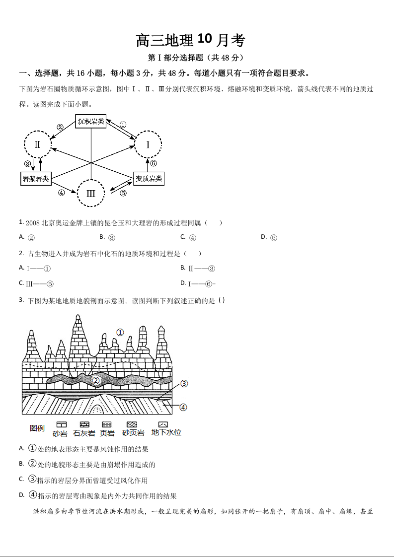 吉林省通化市梅河口市第五中学2025届高三上学期10月月考地理+答案