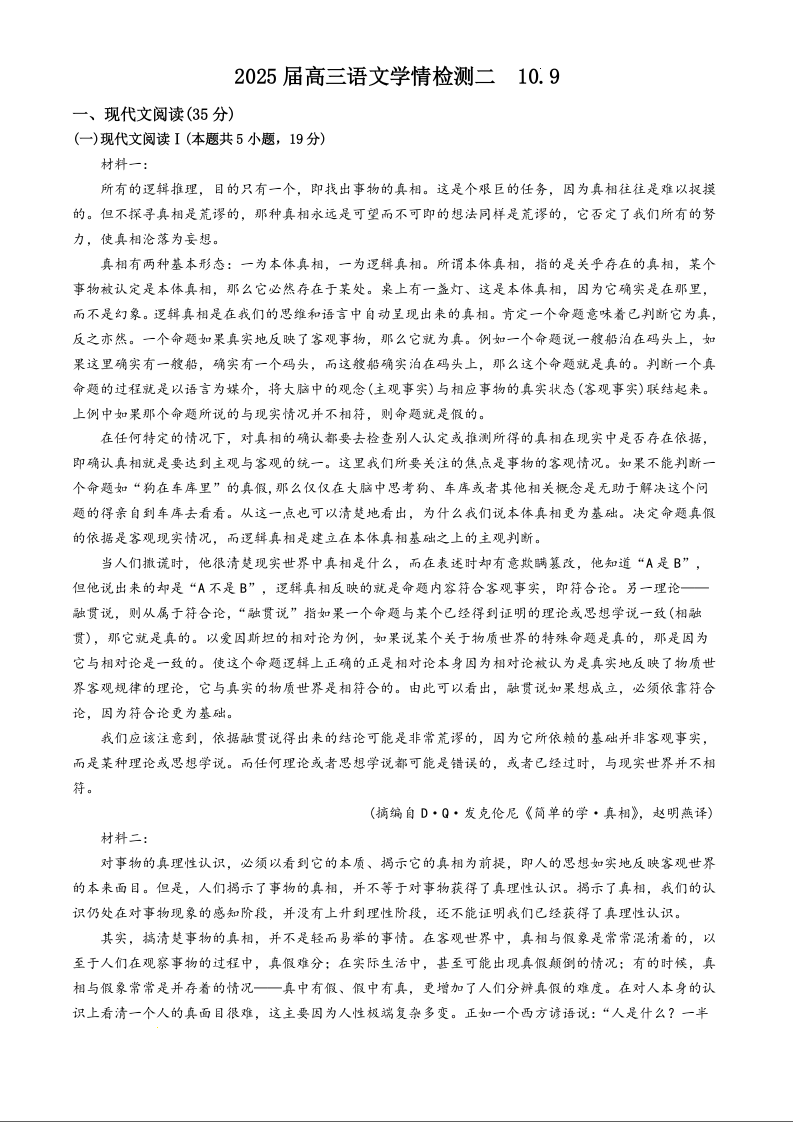 江苏省南通市海安市实验中学2025届高三年级第二次月考语文