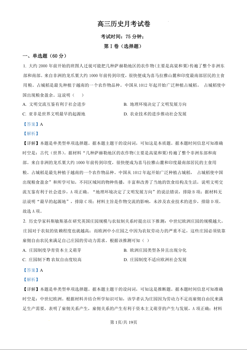 江苏省南通市海安市实验中学2025届高三年级第二次月考历史试卷(解析版)