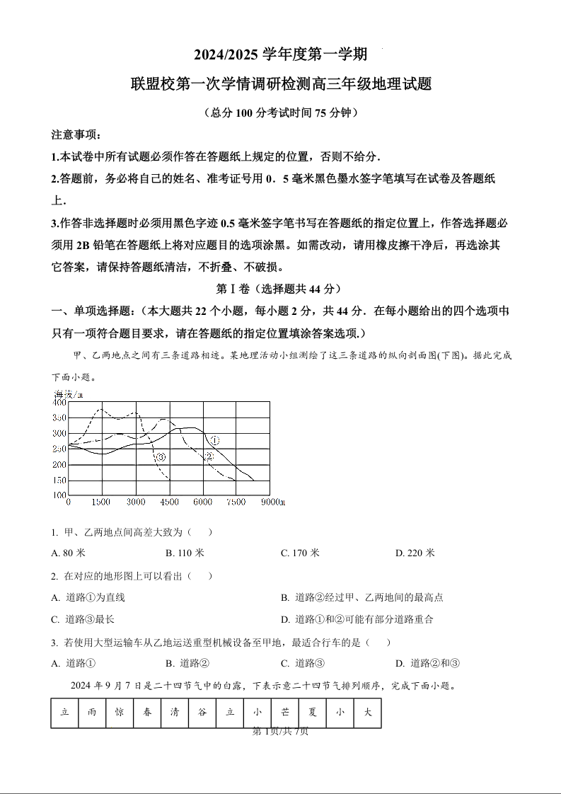 江苏省盐城市五校2024-2025学年度上学期第一次学情调研检测(原卷版)