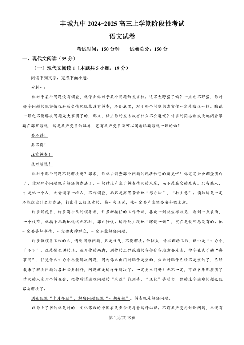 江西省宜春市丰城市第九中学2024-2025学年高三上学期第一次段考语文答案