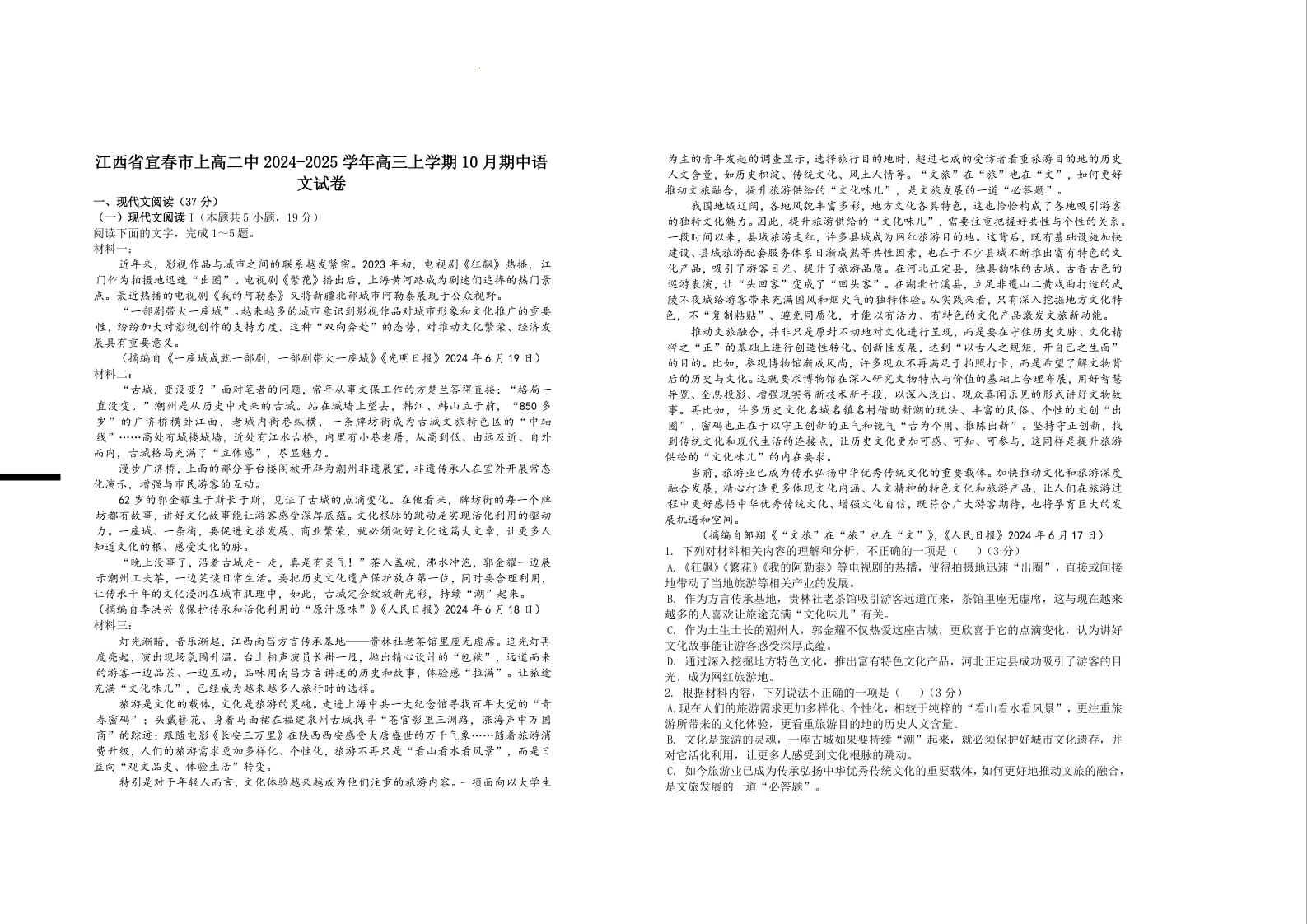 江西省宜春市上高二中2025届高三上学期10月期中考试语文