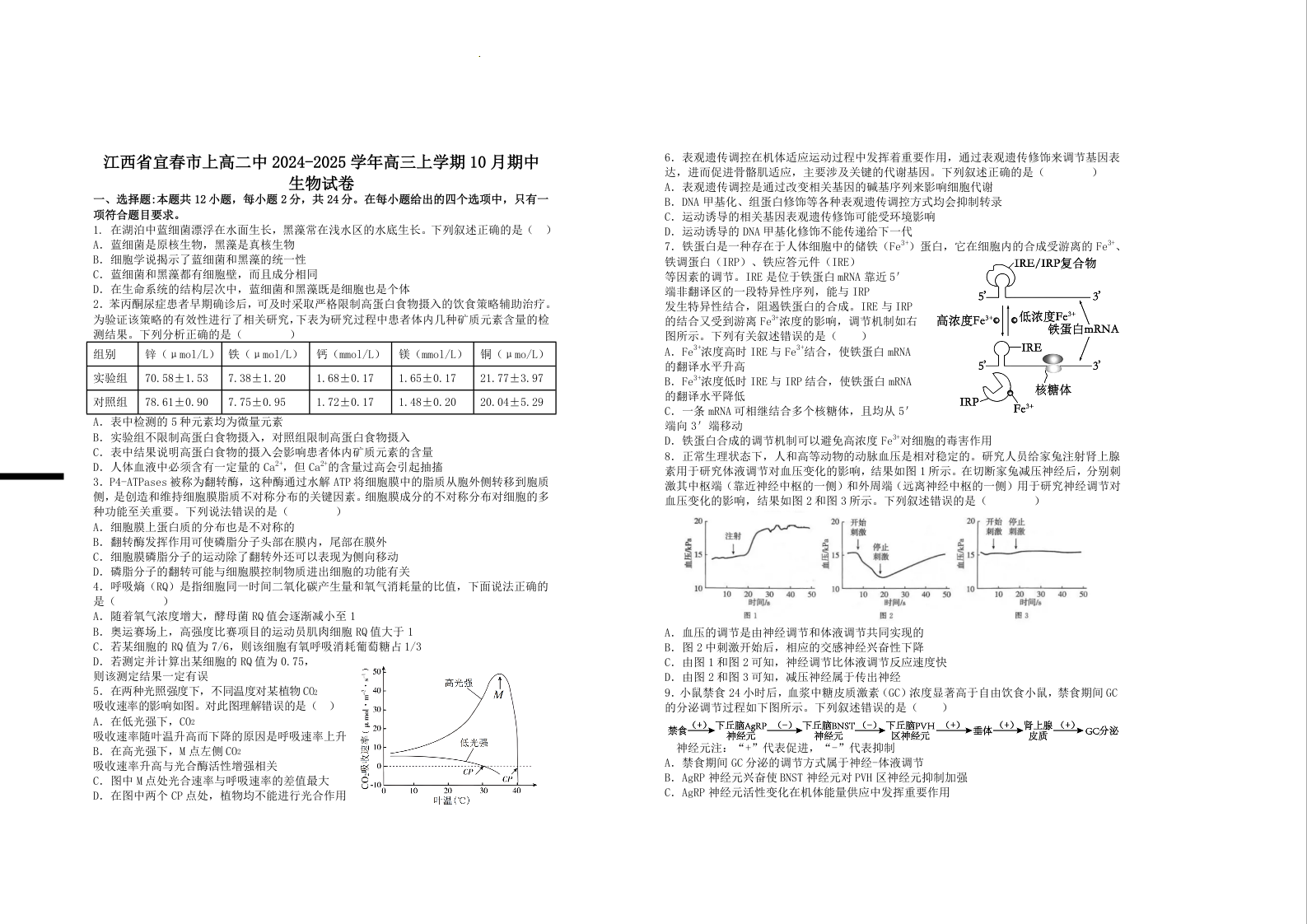 江西省宜春市上高二中2025届高三上学期10月期中考试生物+答案