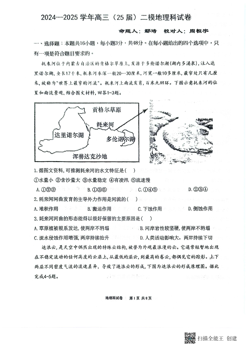辽宁省鞍山市第一中学2025届高三上学期10月二模地理+答案