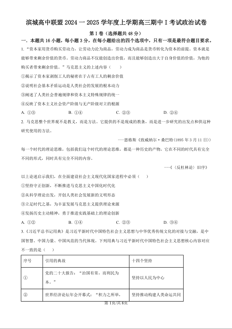 辽宁省大连市滨城高中联盟2025届高三上学期期中考试(原卷版)