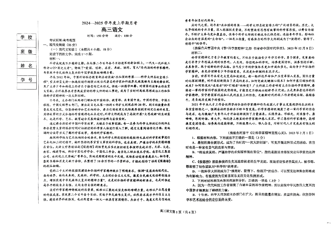 辽宁省辽东南协作体2025届高三上学期10月月考语文+答案