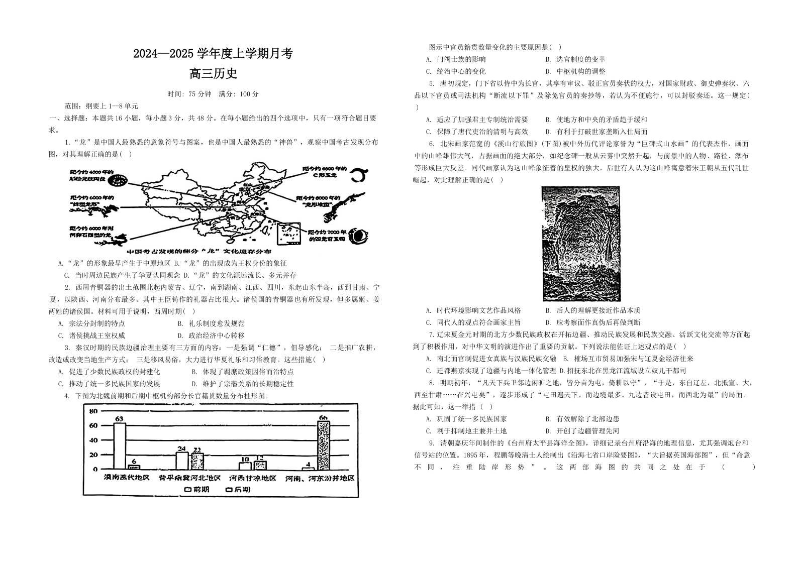 辽宁省辽东南协作体2025届高三上学期10月月考历史+答案