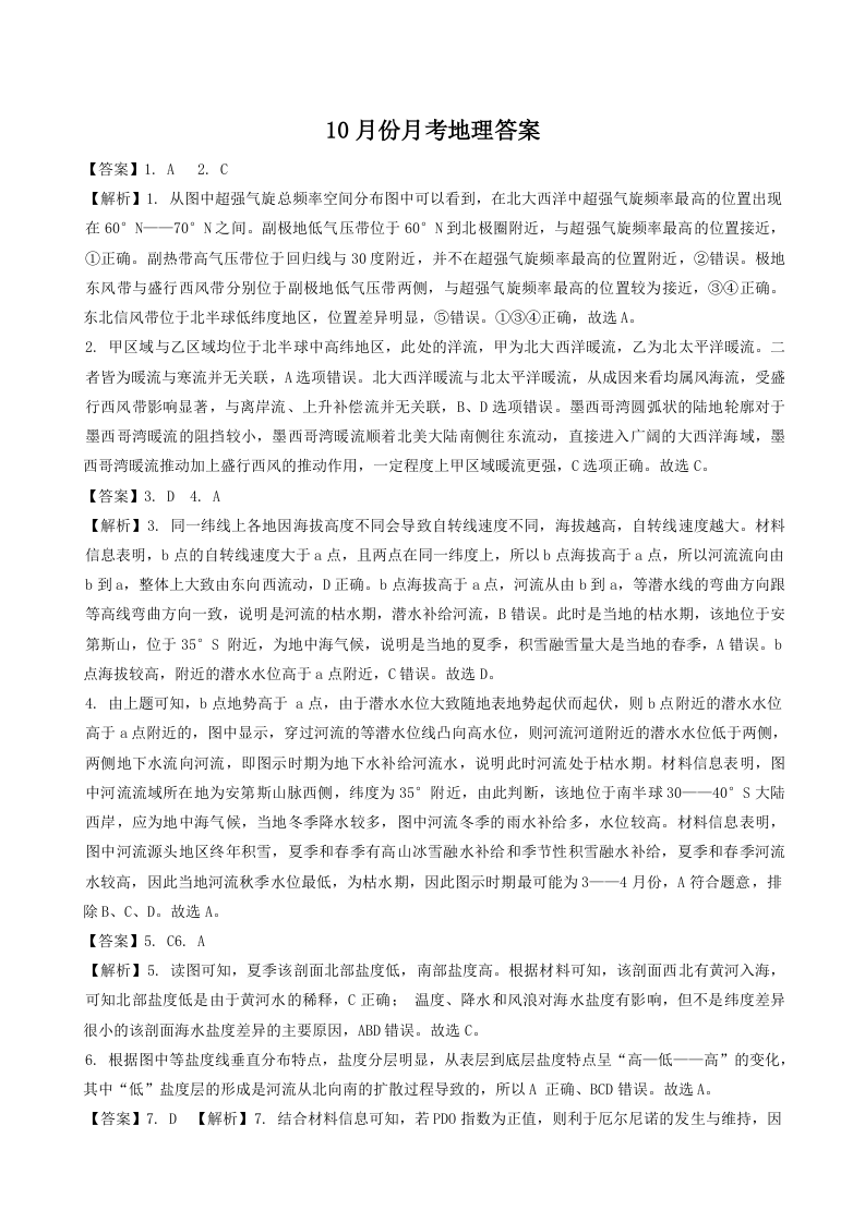 辽宁省沈阳市2025届重点学校高三上学期10月月考地理答案