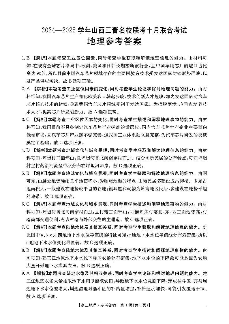 山西省2024-2025学年三晋名校联考10月联合考试地理答案