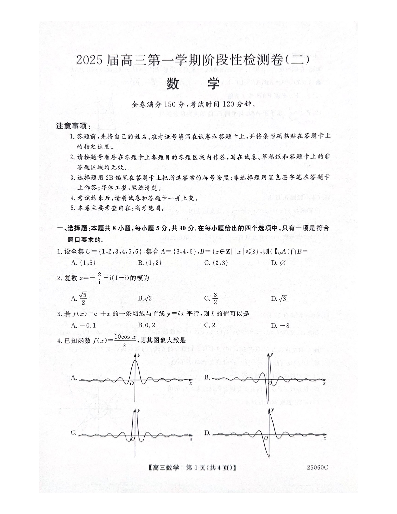 2025届陕西省教育联盟高三上学期第二次阶段性检测数学+答案