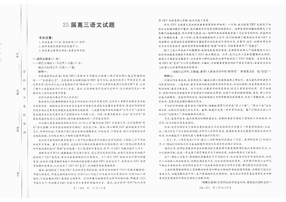 四川省2025届高三部分高中10月联考语文