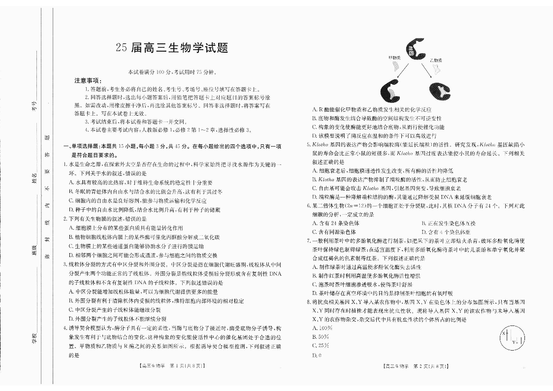 四川省2025届高三部分高中10月联考生物