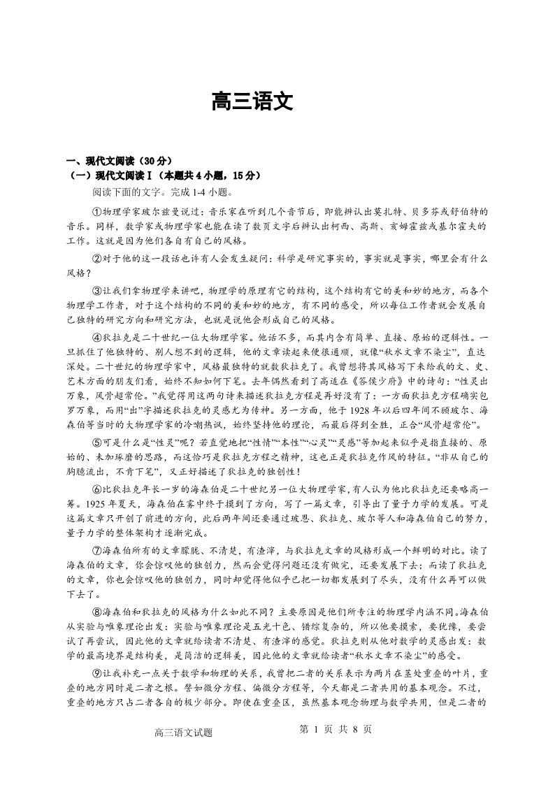 四川省成都列五中学2024-2025学年高三上学期9月月考语文试卷