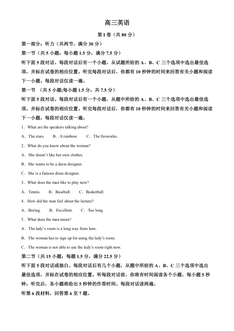 四川省成都列五中学2024-2025学年高三上学期9月月考英语试题+答案