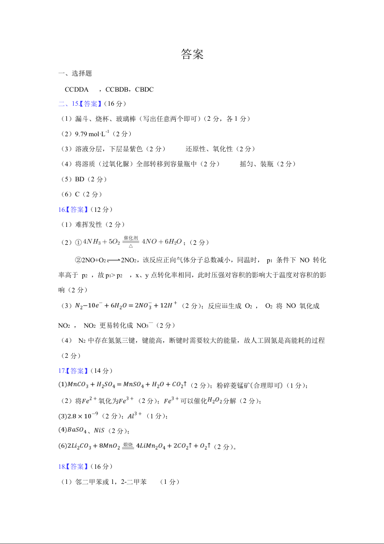 四川省成都列五中学2024-2025学年高三上学期9月月考化学答案