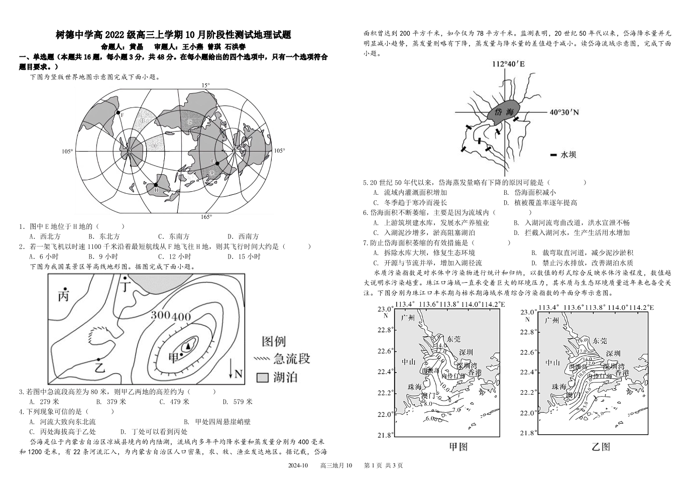 四川省成都市树德中学高2022级高三上学期10月阶段性测试地理+答案