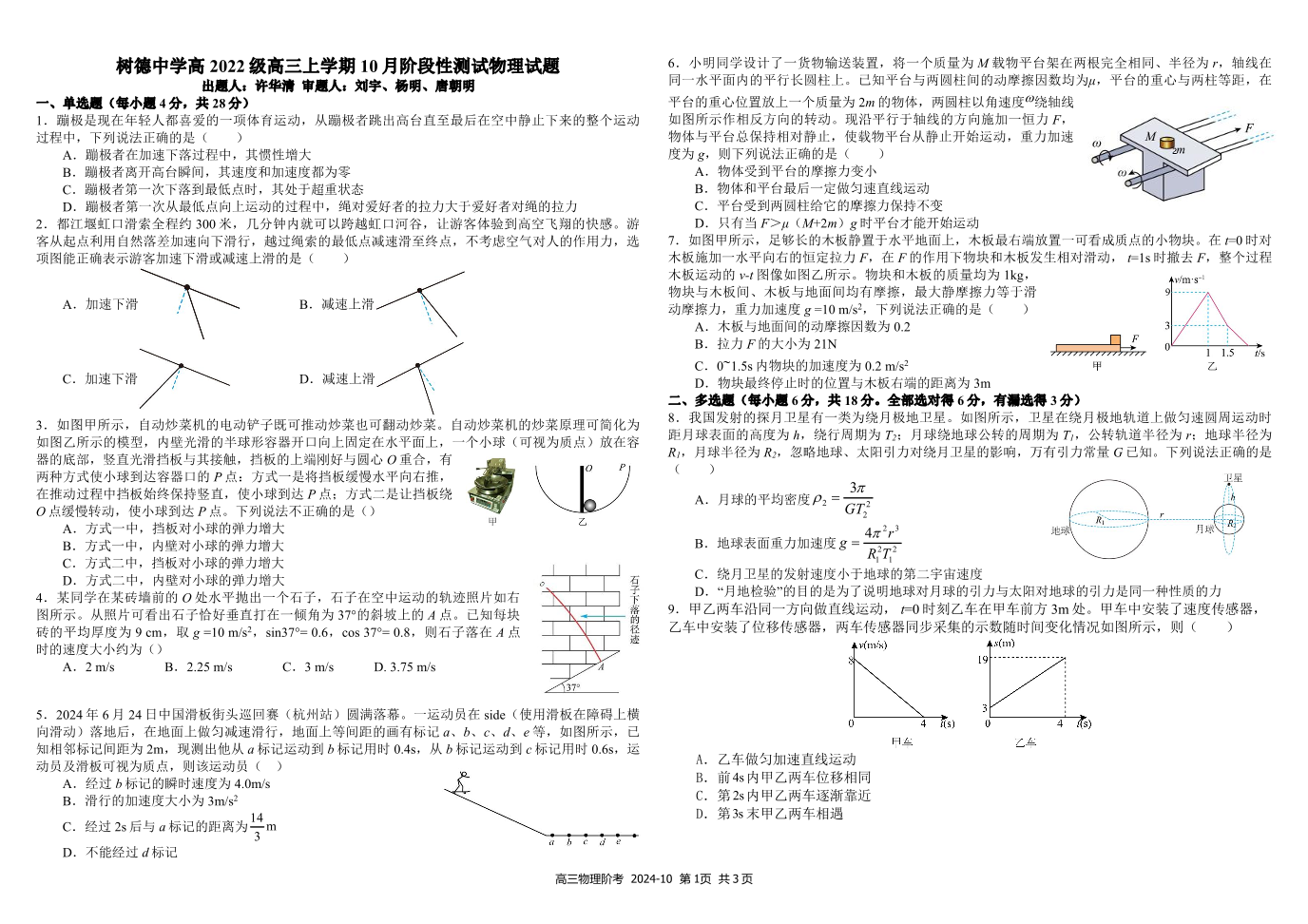 四川省成都市树德中学高2022级高三上学期10月阶段性测试物理+答案