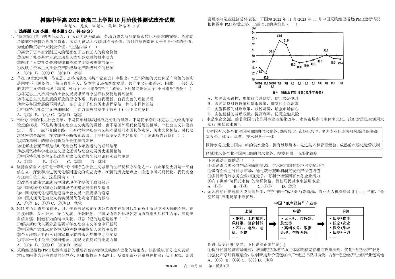 四川省成都市树德中学高2022级高三上学期10月阶段性测试政治+答案
