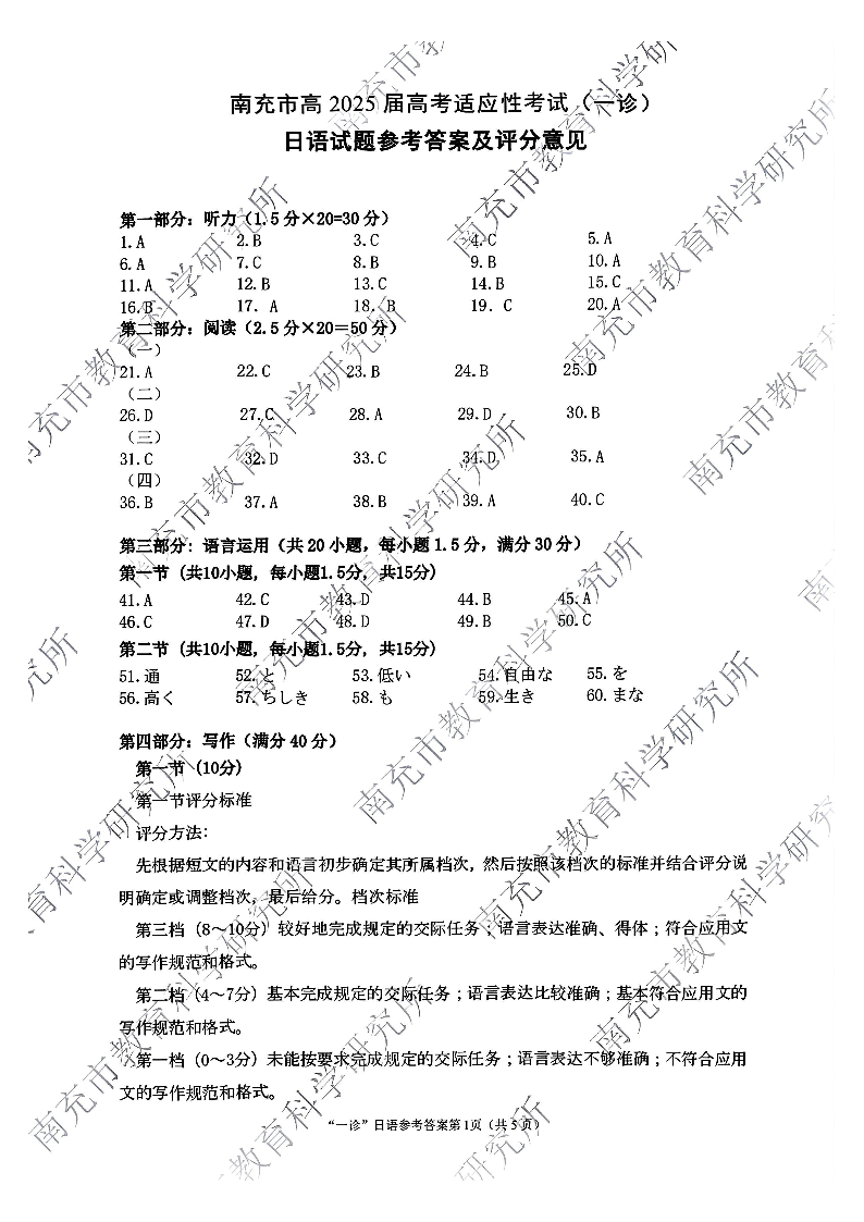 四川省南充市2025届高三高考适应性考试(一诊)日语