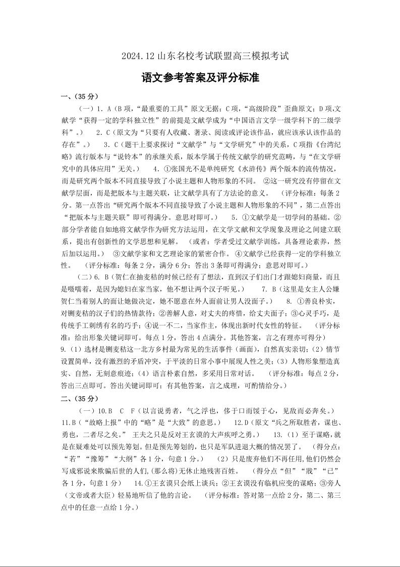 山东省济南市名校考试联盟2024.12高三年级阶段性测试语文答案