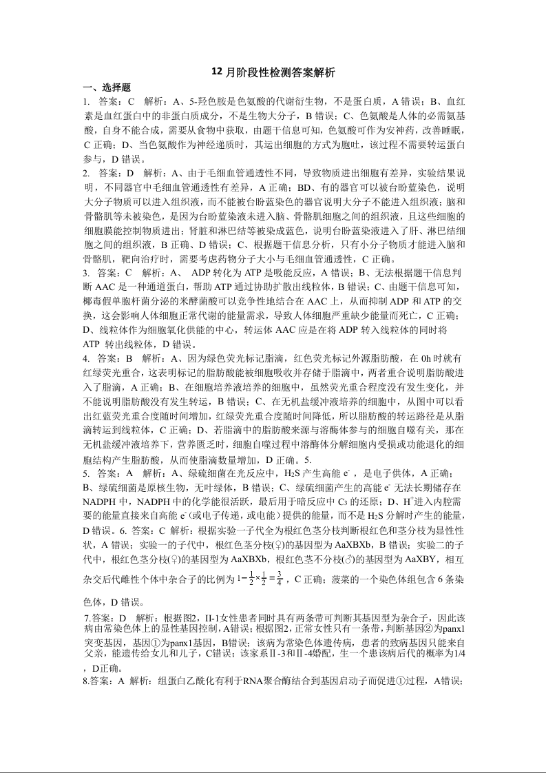 山东省济南名校考试联盟2024.12高三年级阶段性测试生物答案详解