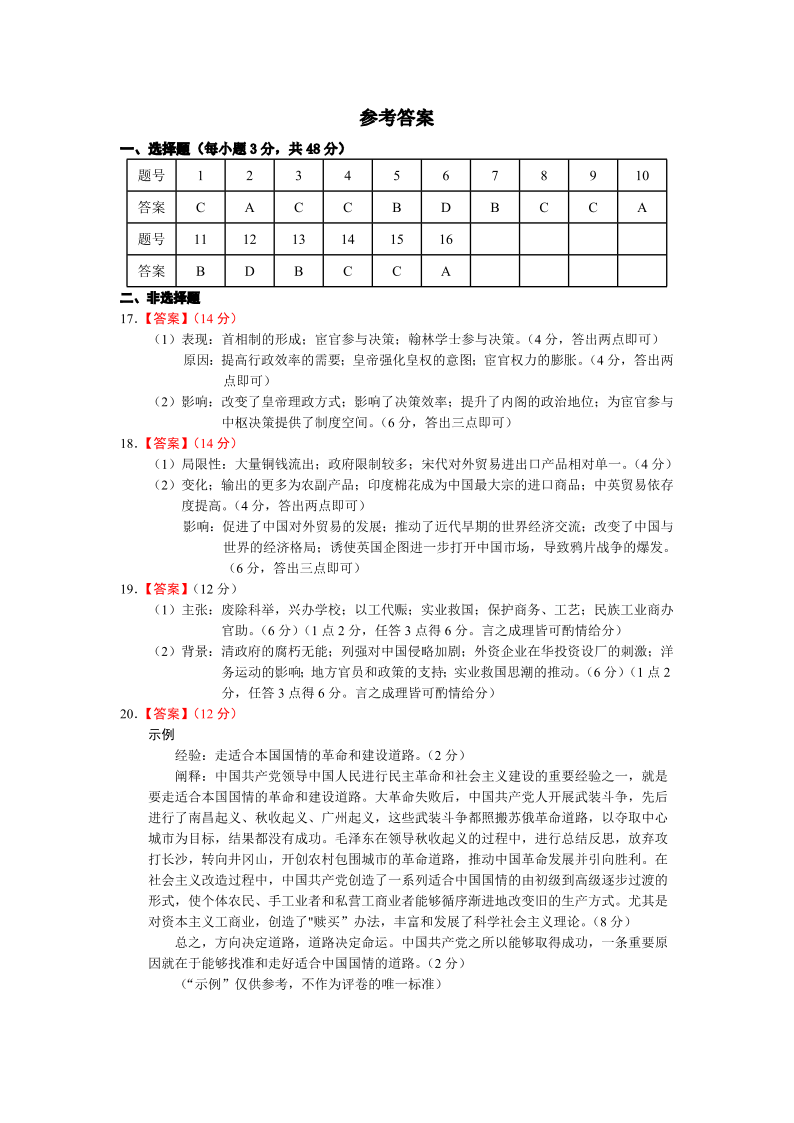 甘肃省西北师范大学附属中学2025届高三上学期期中考试历史答案