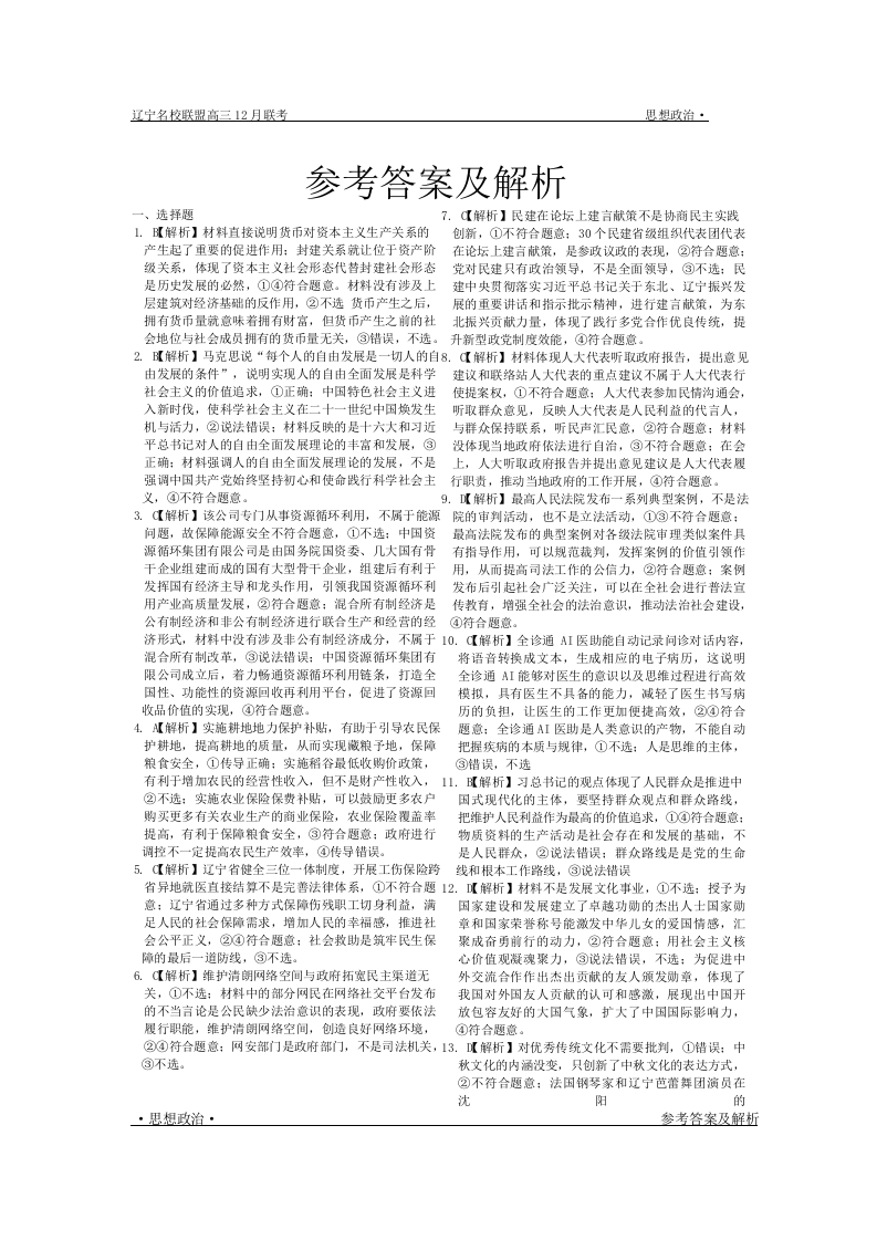 辽宁省名校联盟2024年高三12月份联合考试政治答案