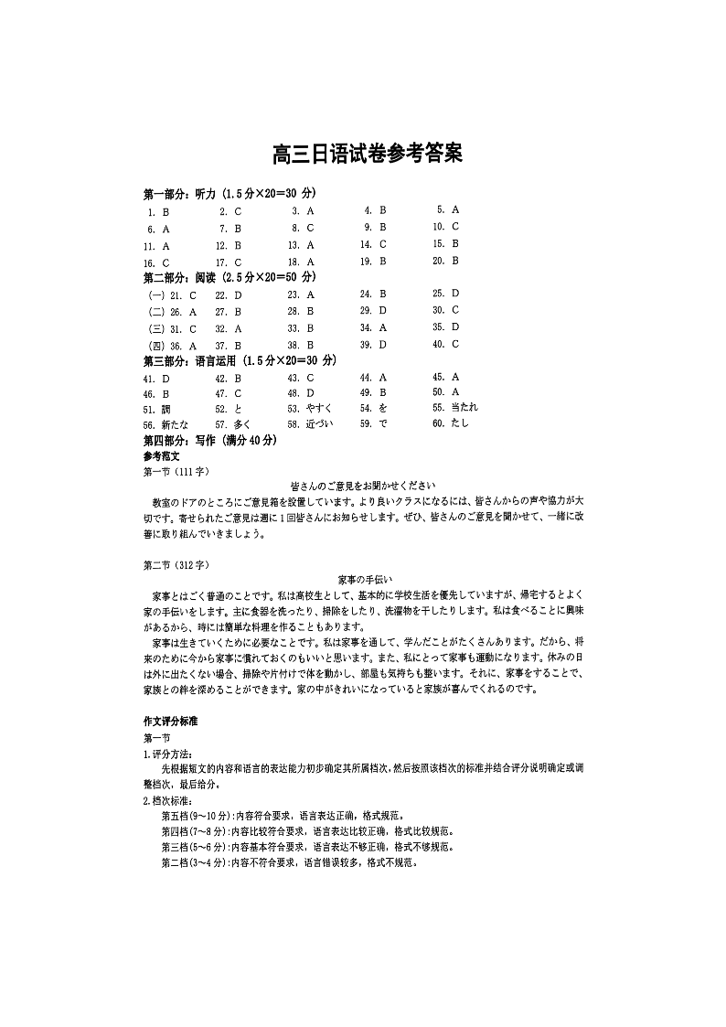 浙江省绍兴市诸暨市2025届高三上学期12月诊断性考试(一模)日语答案