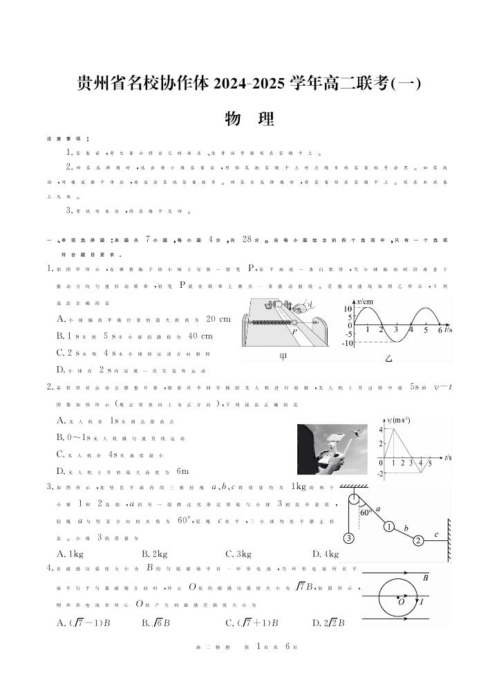 贵州省名校协作体2024-2025学年高二上学期12月联考(一)物理