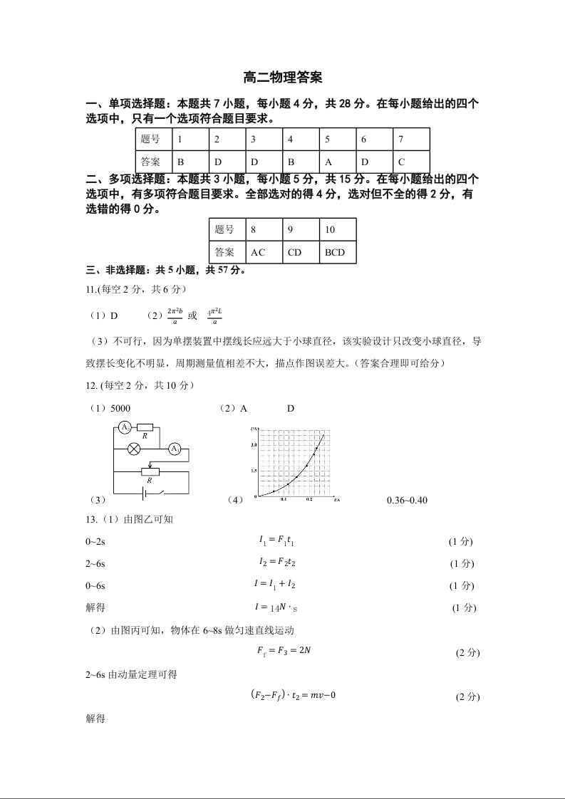 贵州省名校协作体2024-2025学年高二上学期12月联考(一)物理答案