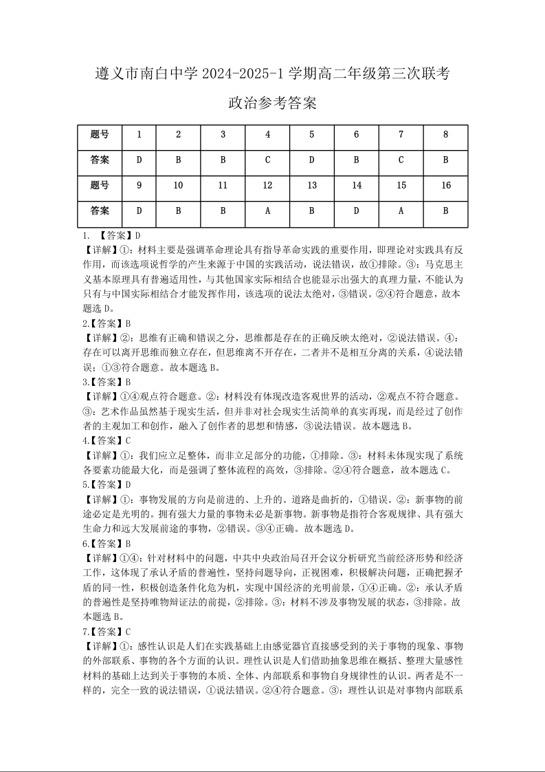 贵州省名校协作体2024-2025学年高二上学期12月联考(一)政治答案