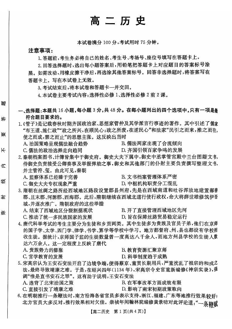 广东省佛山市H7联盟2024-2025学年高二上学期期中联考历史