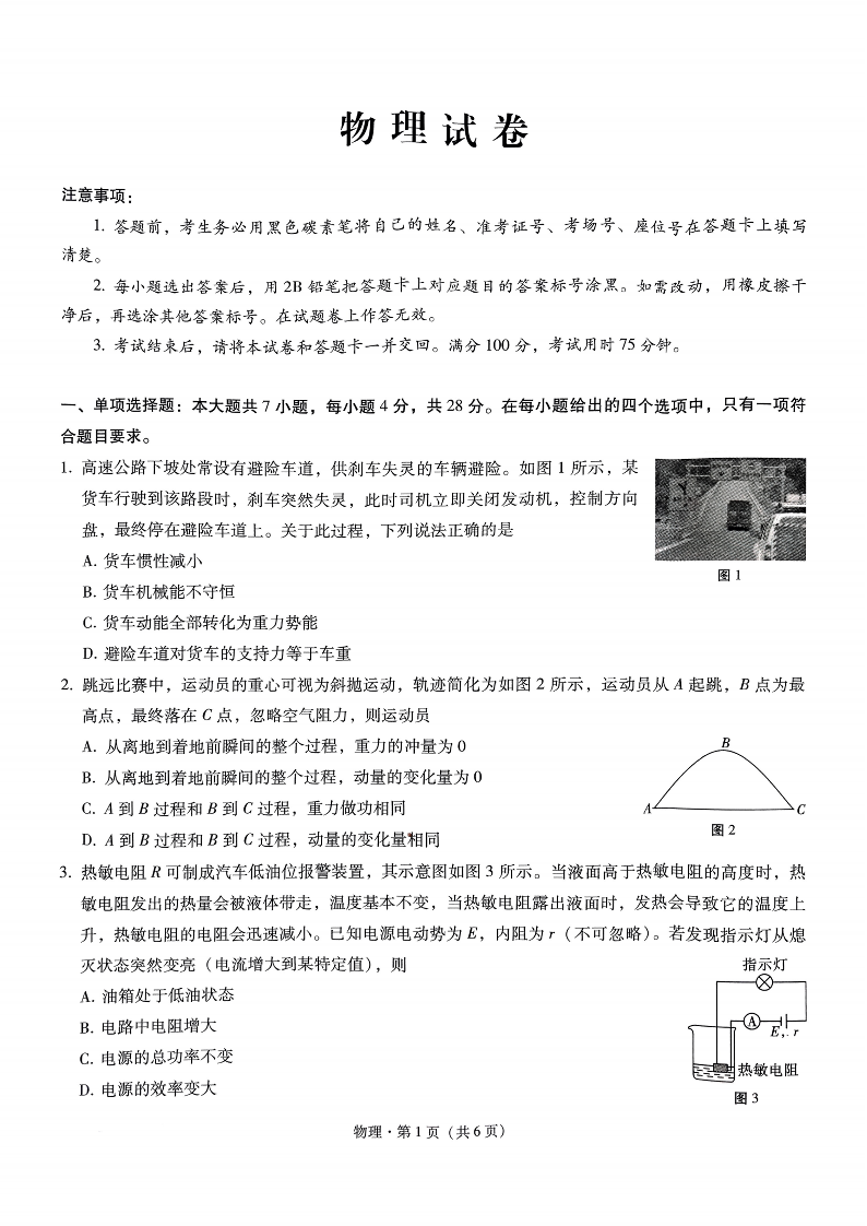 重庆市巴蜀中学2025届高考适应性月考卷(二)物理
