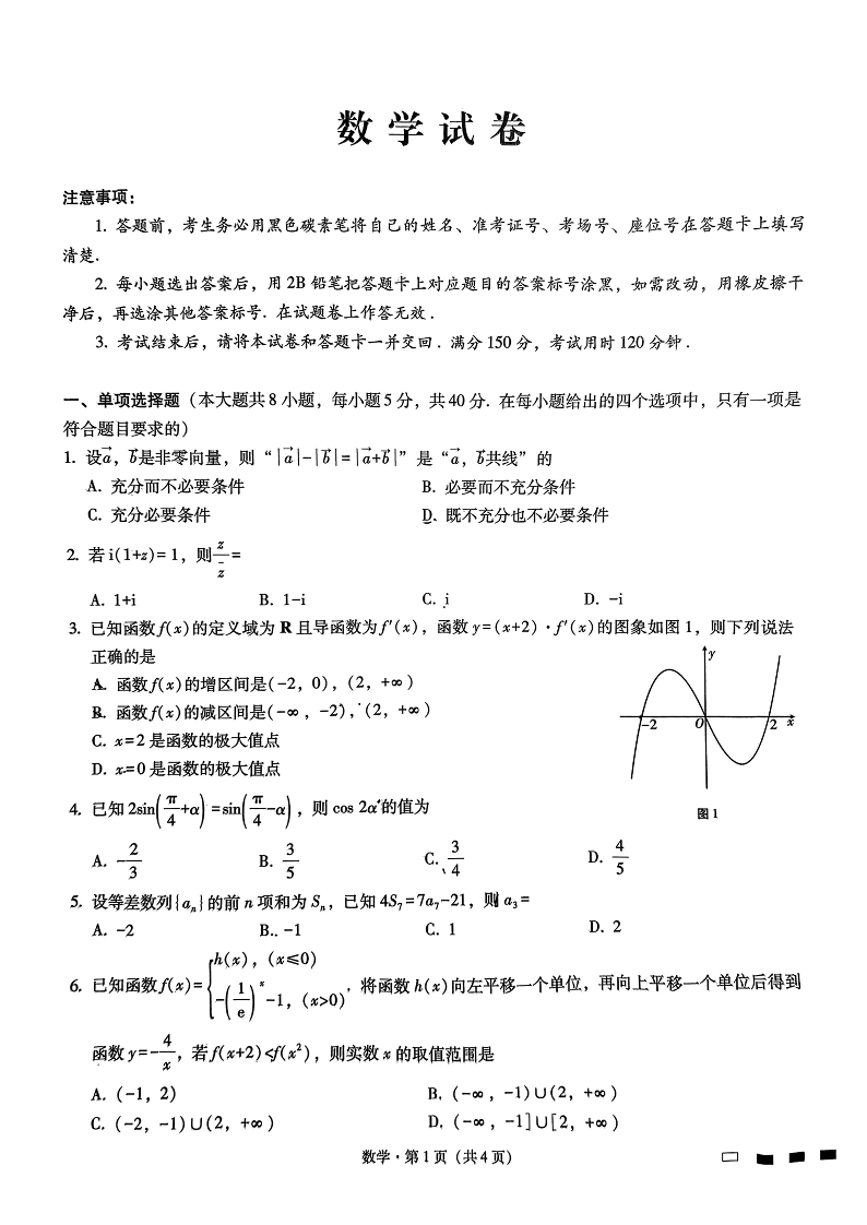 重庆市第八中学2025届高考适应性月考卷(二)数学