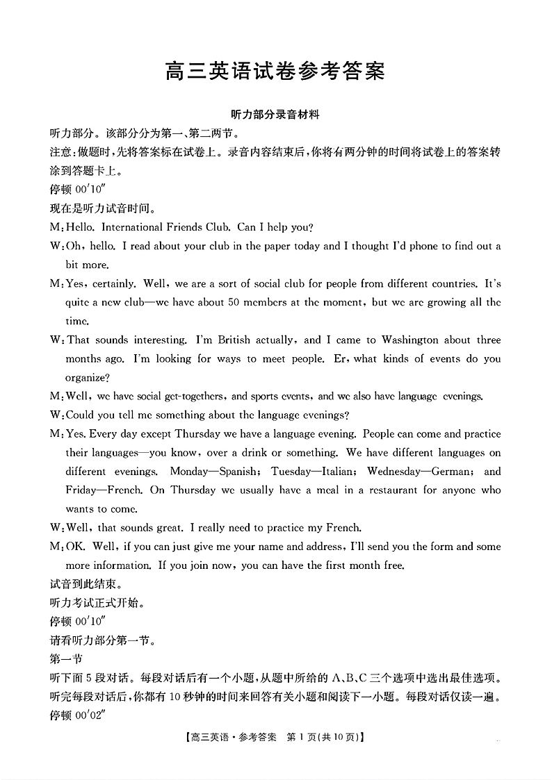 江西省部分高中学校2024-2025学年度高三上学期联考英语答案