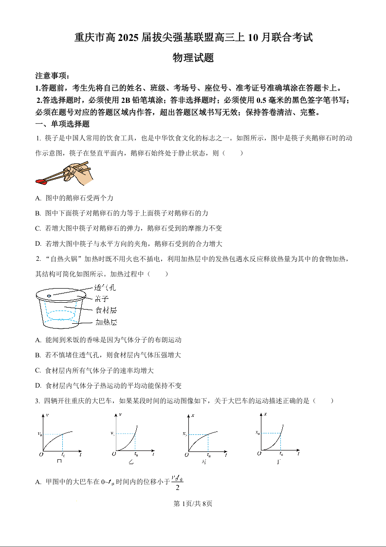 重庆市高2025届拔尖强基联盟高三上10月联合考试物理试卷(原卷版)