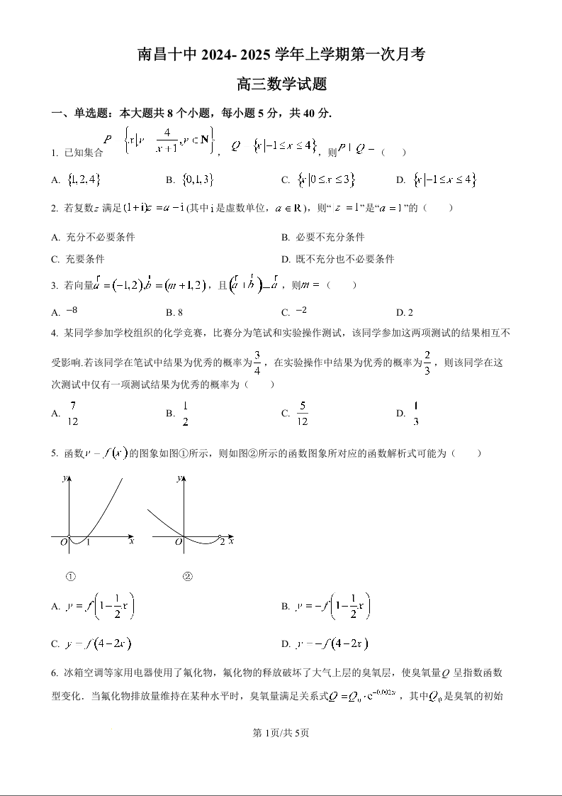 江西省南昌市第十中学2025届高三上学期第一次月考数学