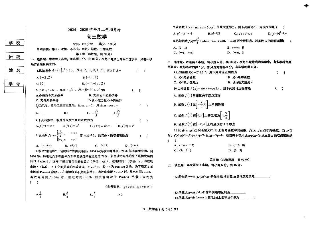 辽宁省辽东南协作体2025届高三上学期10月月考数学+答案