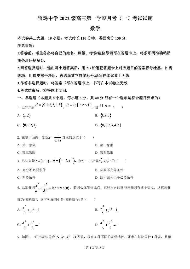 陕西省宝鸡中学2022级高三第一学期月考(一)数学试题(原卷版)