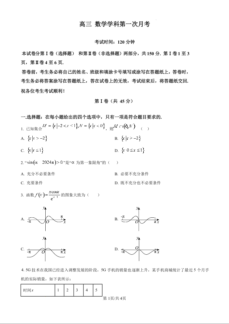 天津市南开中学2025届高三上学期10月月考数学试题(原卷版)