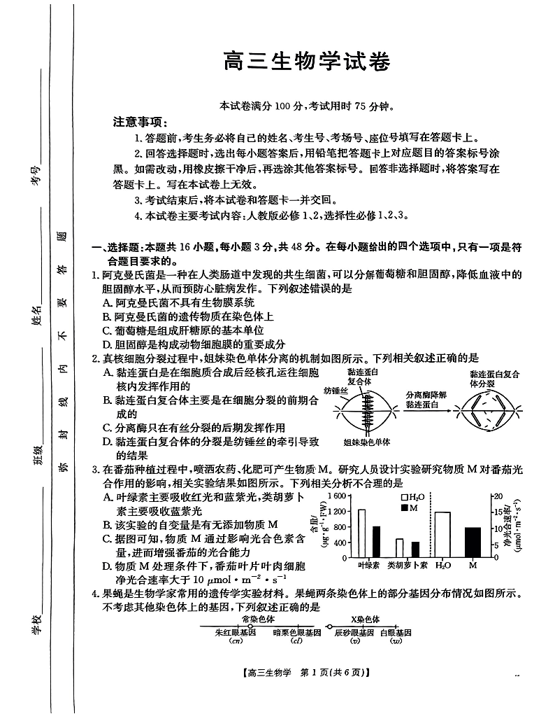 青海省区域高中2025届高三12月联考生物