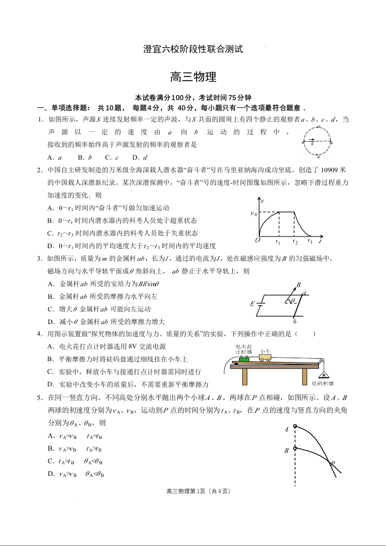 江苏省无锡市澄宜六校2025届高三上学期12月联考物理