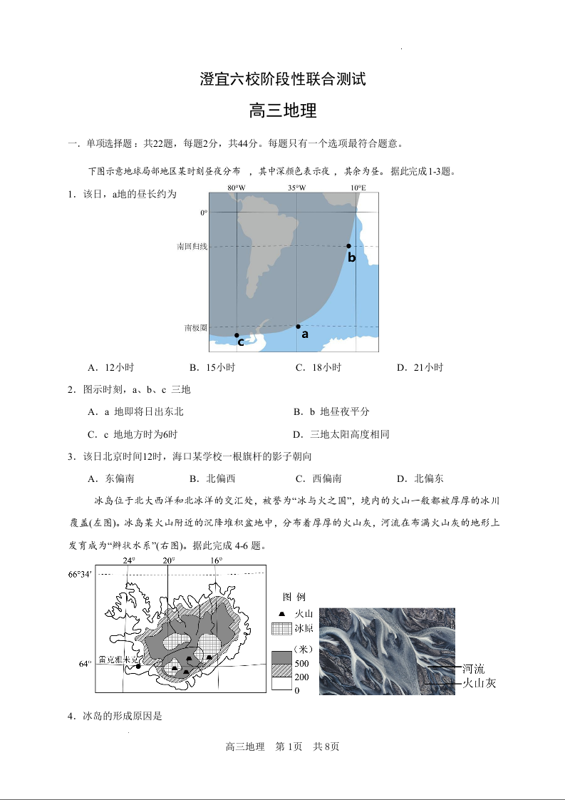 江苏省无锡市澄宜六校2025届高三上学期12月联考地理