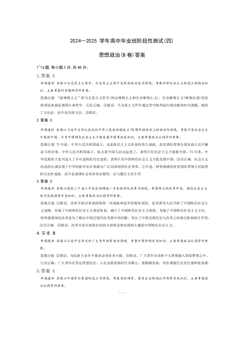 河南省天一大联考2025届高中毕业班阶段性测试(四)政治答案