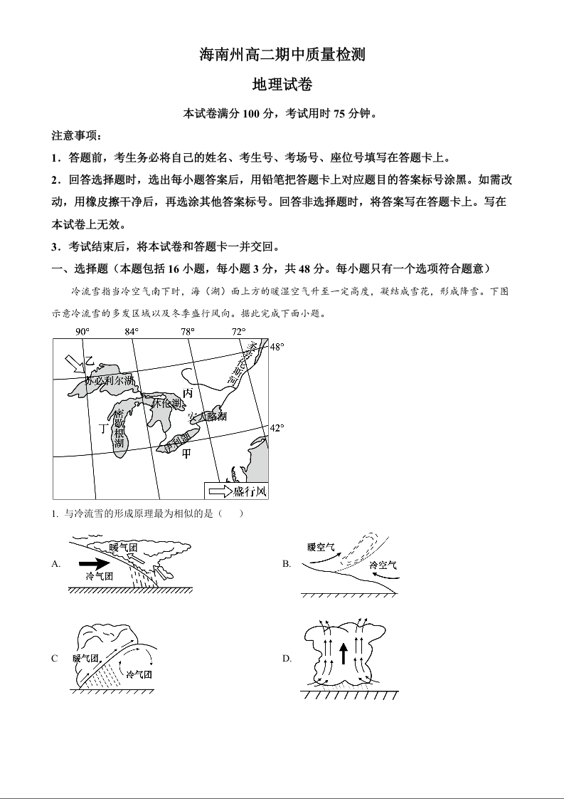 青海省海南州2024-2025学年高二上学期期中质量检测地理(原卷版)