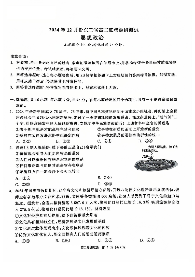 东北三省2024-2025学年高二上学期12月联考调研测试政治