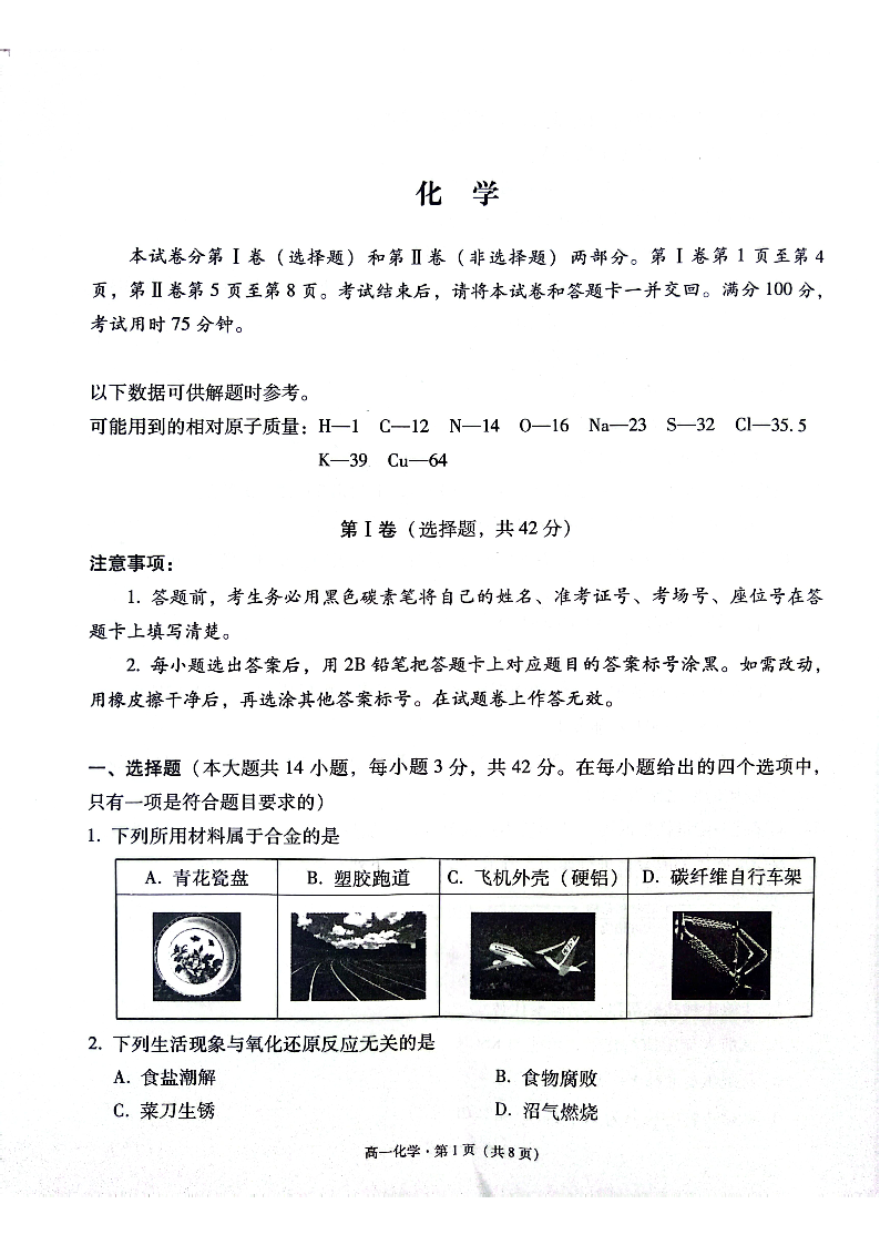 贵州省贵阳市2024-2025学年高一上学期12月联考试题化学