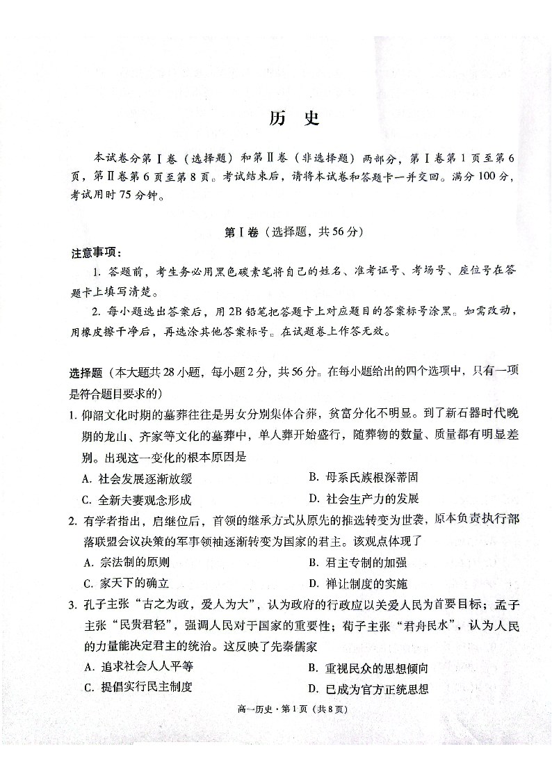 贵州省贵阳市2024-2025学年高一上学期12月联考试题历史